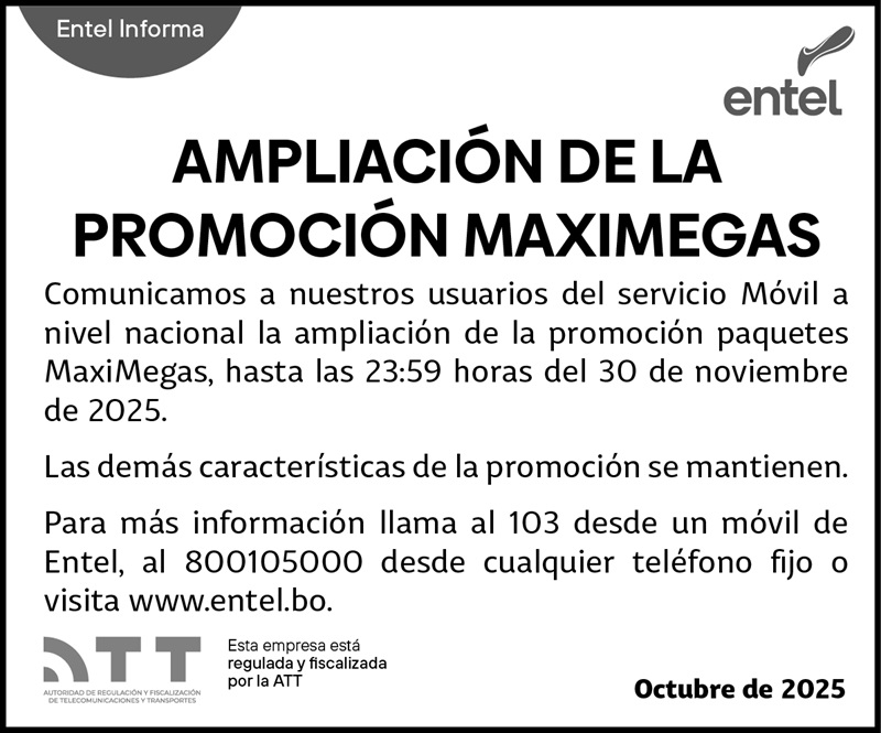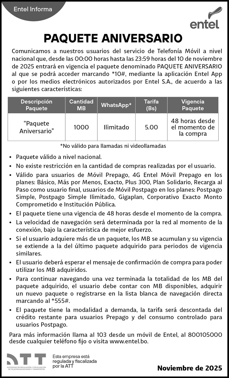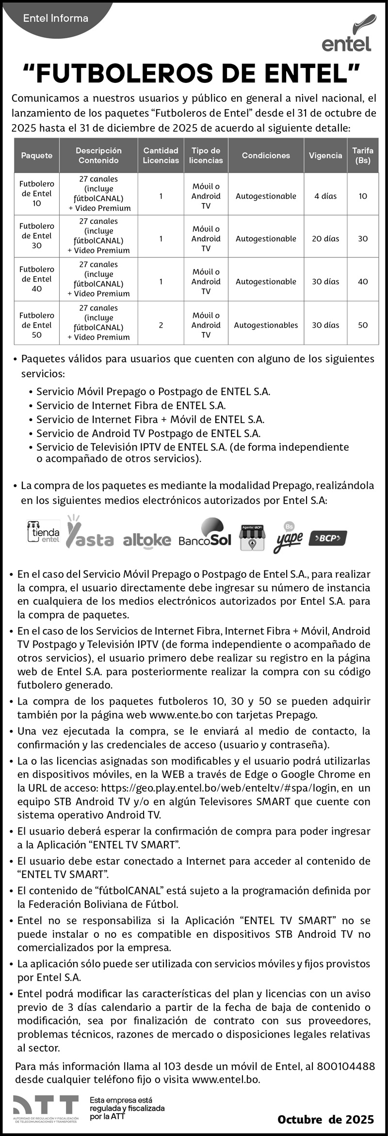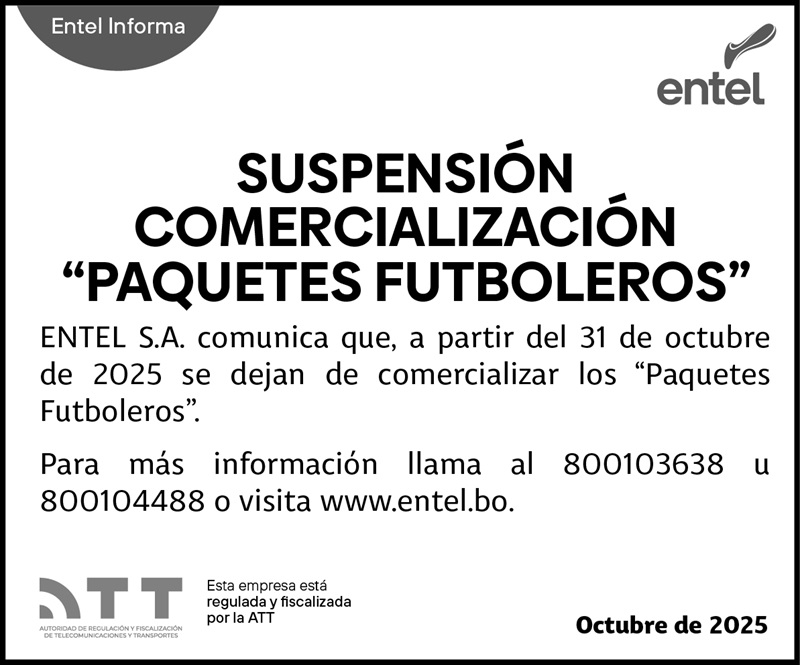 La Empresa Nacional de Telecomunicaciones ENTEL S.A. informa:
