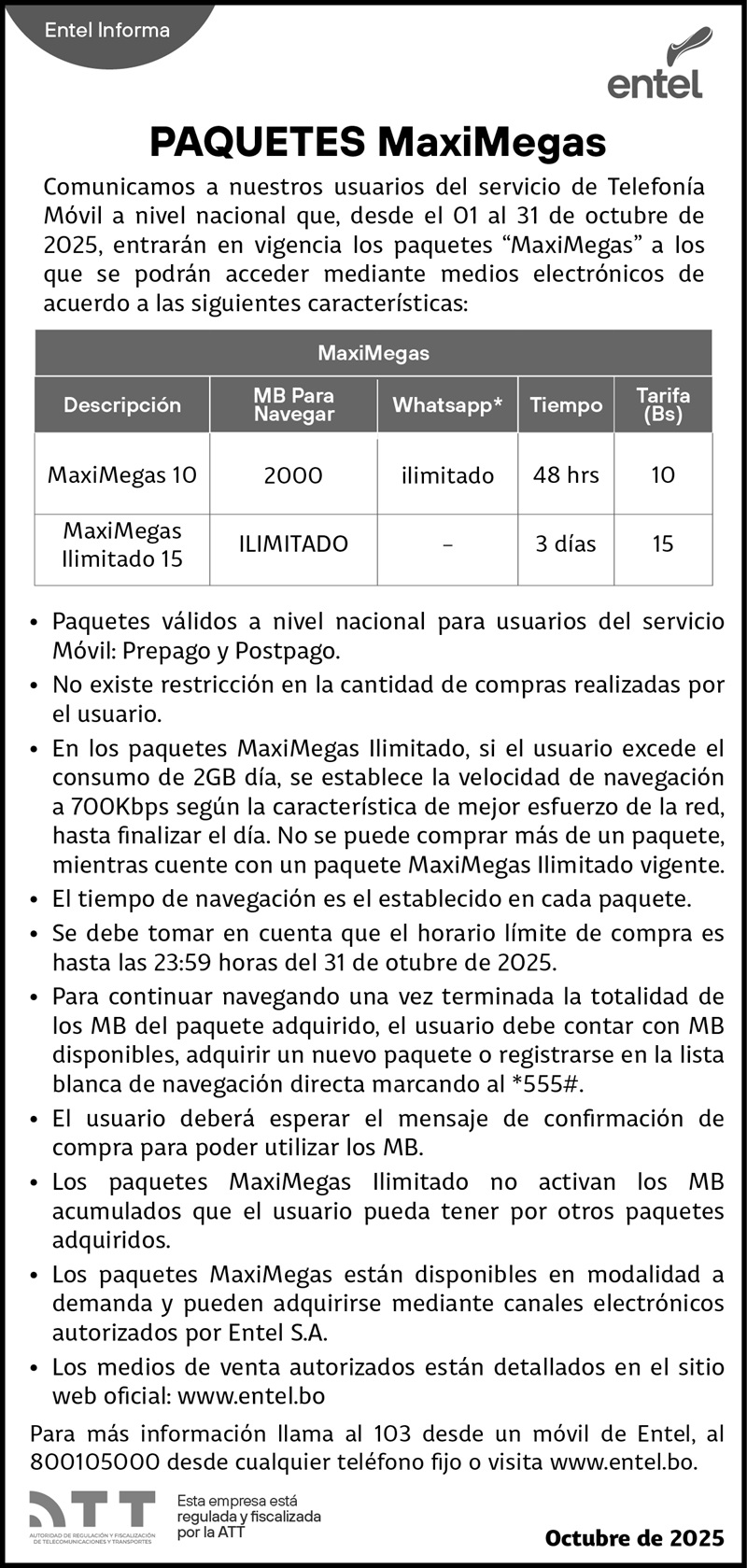 COMUNICADO PAQUETES MAXIMEGAS