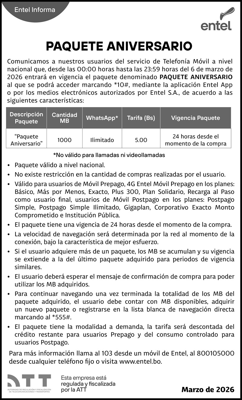 COMUNICADO PAQUETE ANIVERSARIO EL ALTO