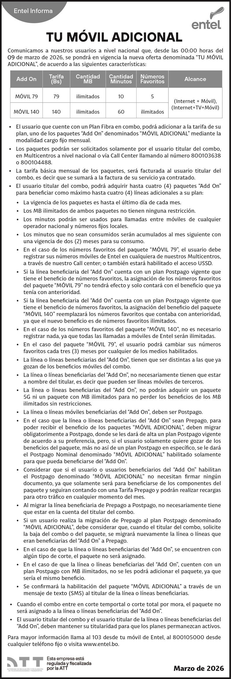 COMUNICADO TU MÓVIL ADICIONAL Medio: Ahora El Pueblo Fecha de publicación: lunes 9/3/2026