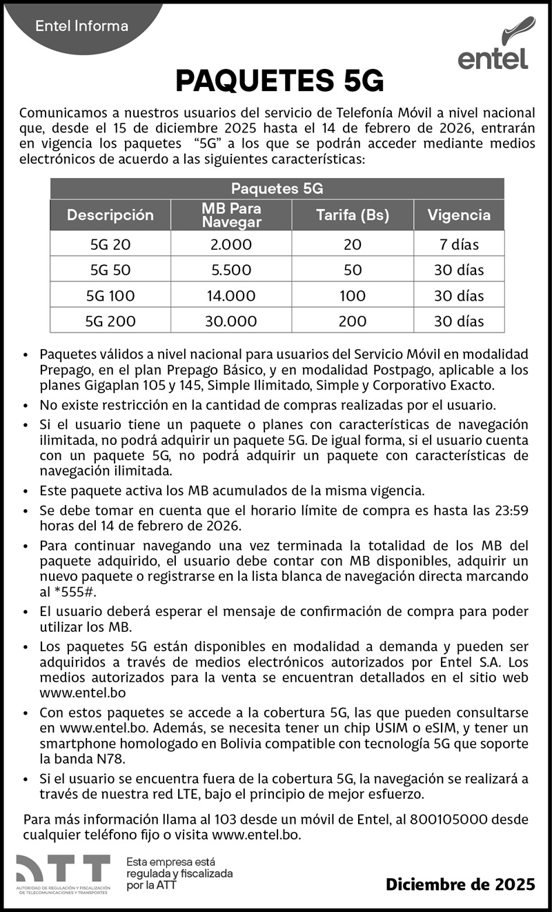 COMUNICADO PAQUETES 5G