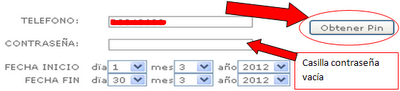 5.- Luego hacer click en el botón obtener PIN, dejando en blanco la casilla de contraseña como se ve en la siguiente imágen.