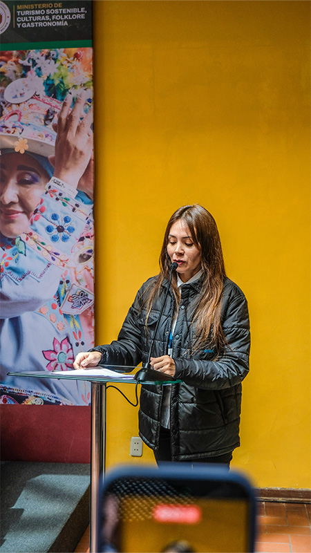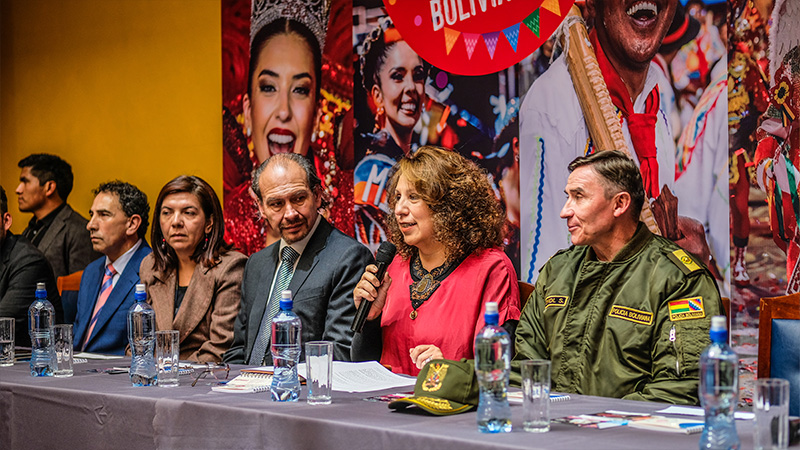 La ministra de Turismo Sostenible, Culturas, Folklore y Gastronomía, Cinthia Yáñez, destacó la importancia del aporte tecnológico de ENTEL S.A. para el desarrollo y la proyección del Carnaval de Oruro.