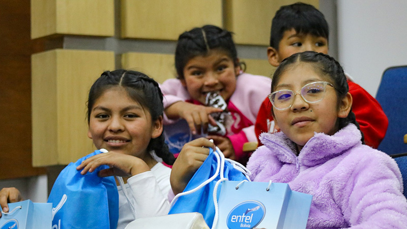 La Paz, 10 de enero de 2026. La Empresa Nacional de Telecomunicaciones S.A. (ENTEL S.A.) llevó adelante jornadas de confraternización en beneficio de la niñez boliviana, alcanzando a hijos de internos del penal de San Pedro, a niñas y niños de familias de comerciantes, transportistas y juntas vecinales de la zona San Pedro, así como a los beneficiarios del comedor San Calixto y de la comunidad de Chicani, en la ciudad de La Paz.